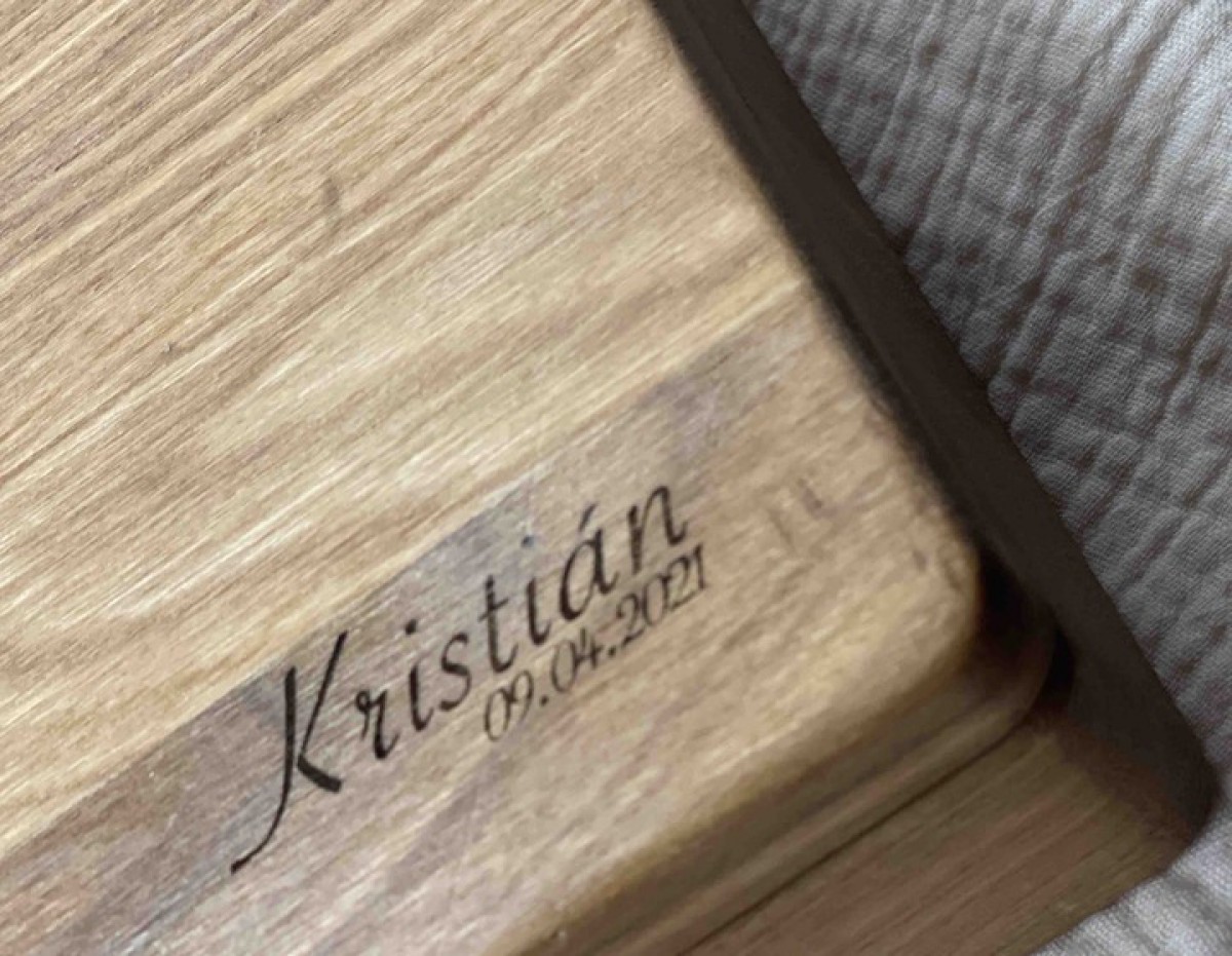 Memory box je možné aj personalizovať - môžete si nechať vygravírovať meno, priezvisko, dátum narodenia či Vaše osobné želanie dieťaťu a matke.